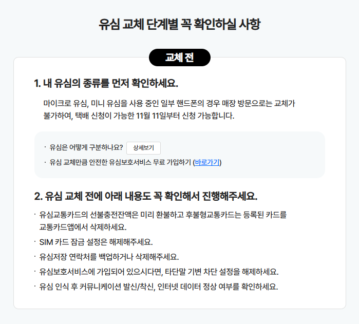 ※ 나노·마이크로 등 단말기 유심 규격 사전 확인 필요