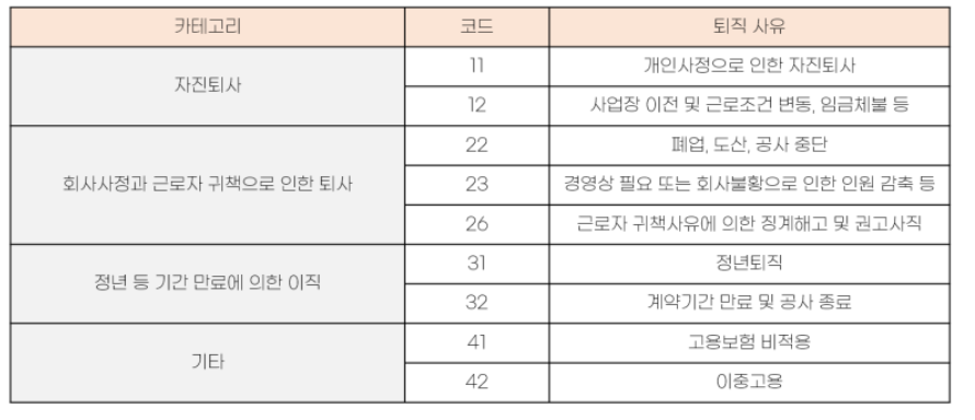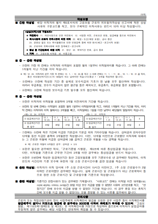 - 이직사유 코드를 정확히 기재하도록 요청합니다. 정당사유(예: 1104) 여부는 수급에 직결됩니다.