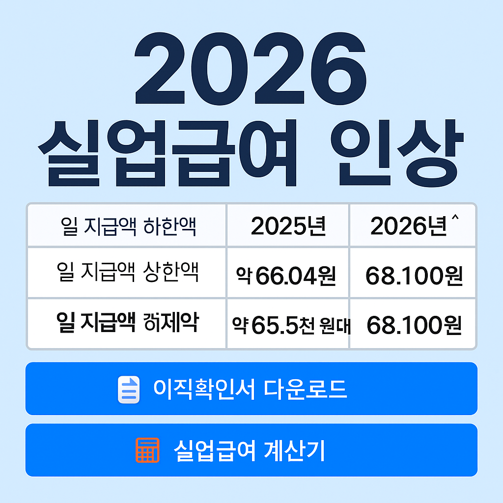 2026년부터 실업급여(구직급여)의 일 지급액 상한과 하한이 조정됩니다. 실제로 내가 받을 금액이 얼마나 되는지, 그리고 퇴사 전에 무엇을 준비해야 하는지 한 번에 정리했습니다.