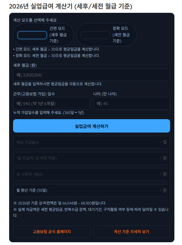 2026 실업급여 계산기 개정판 – 최종 통합 안내