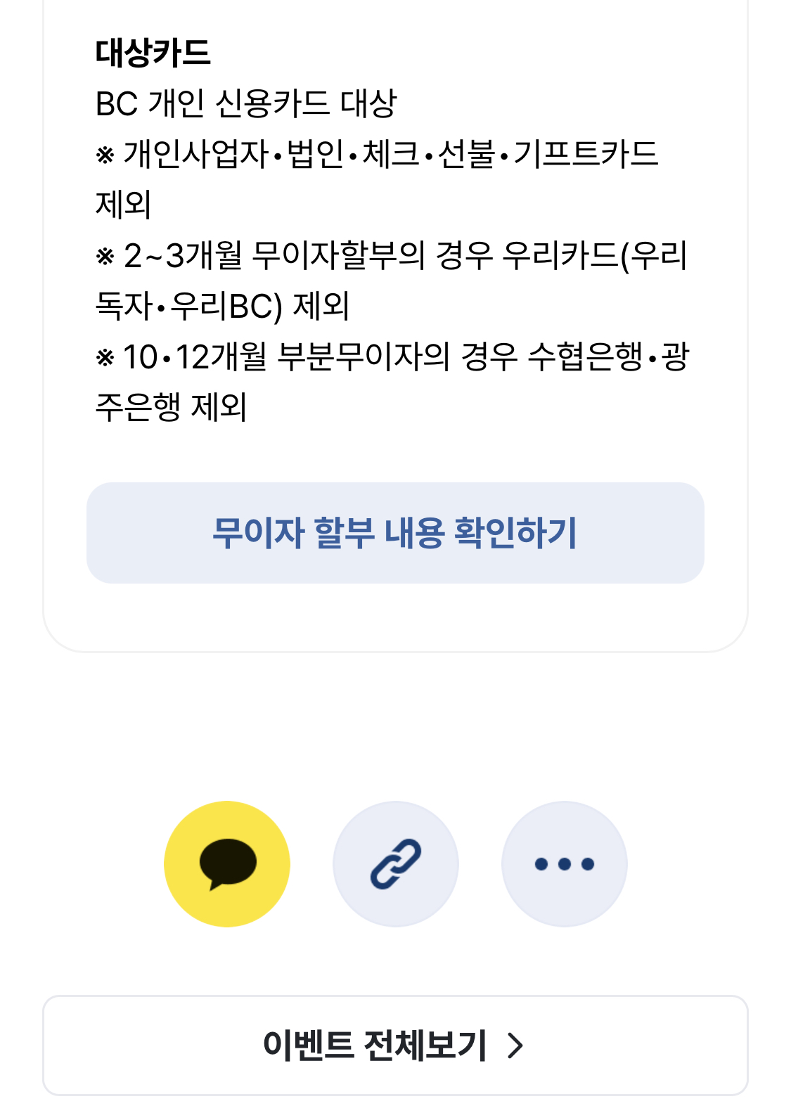 - ✅ BC카드 – 무이자 + 최대 5만 원 페이백