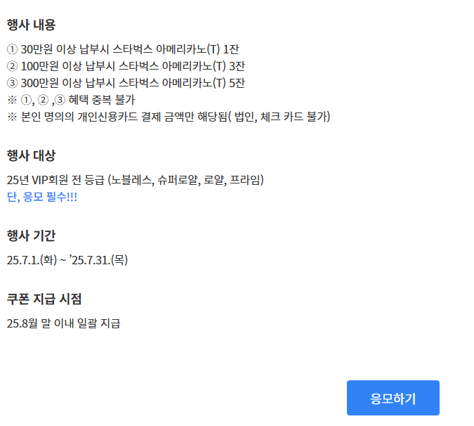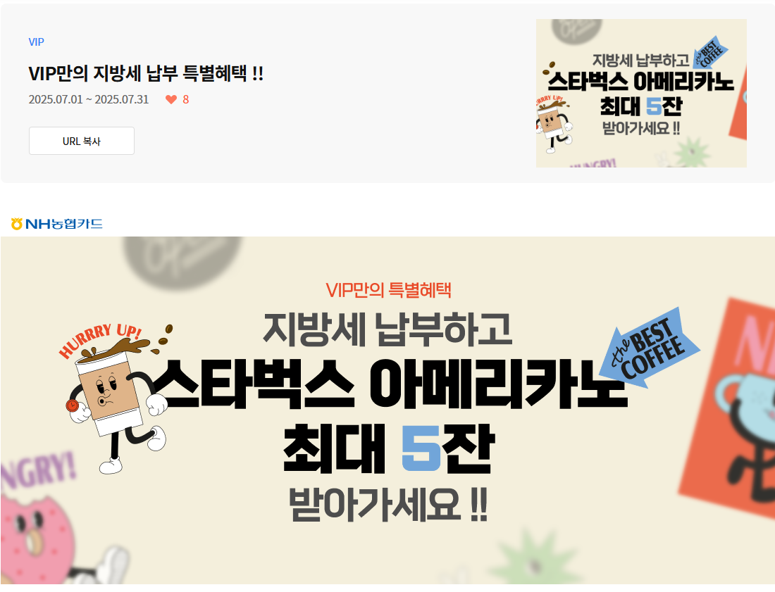 - 농협카드 VIP회원이라면 스타벅스 e쿠폰 제공