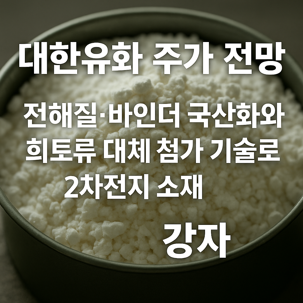 애코앤드림 분석 보기 ▶6️⃣ 대한유화 – 전해질·바인더 국산화 핵심주